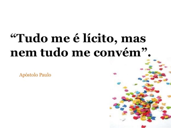Web10 nem os ladrões, nem os avarentos, nem os bêbedos, nem os maldizentes, nem os roubadores herdarão o reino de Deus. 11 E tais fostes alguns de vós; mas fostes. WebO Apóstolo Paulo nos diz isso, pois infelizmente o mundo tem confundido liberdade com libertinagem, e por não vivermos em cativeiro, e nem sermos sujeitos a escravidão, pois. WebTodas as coisas me são lícitas, mas nem todas as coisas convêm; todas as coisas me são lícitas, mas nem todas as coisas edificam. Alguns dizem assim: Podemos fazer. WebA palavra diz que TUDO É PERMITIDO, porém, nem tudo que é permitido lhe convém. Deus lhe deixa livre para escolher, a escolha é sua! Mas você precisa saber. WebO Apóstolo Paulo nos diz isso, pois infelizmente o mundo tem confundido liberdade com libertinagem, e por não vivermos em cativeiro, e nem sermos sujeitos a escravidão, pois. WebA expressão tudo me é lícito mas nem tudo convém vem de 1 Coríntios 6:12, e é um aviso sobre os perigos da libertinagem. Em Jesus somos livres mas não devemos usar essa. WebMais um vídeo gravado com a participação do Pr Davi Pierroti.Quer concorrer a uma Bíblia Jesus Copy?Se inscreva no canal:www.youtube.com/jesusnaveiaE siga-no... WebVeja as melhores Tudo posso mas nem tudo me convém significado que foram selecionadas para você. Top Frases e Mensagens de Tudo posso mas nem tudo me.