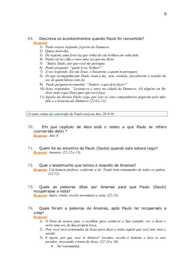 Web1. Na Criação, Deus criou o homem e a mulher e chamou o homem Adão e a mulher Eva. 2. Deus colocou duas árvores no meio do jardim e sobre uma delas ordenou ao homem: De. Weba) As partes do mundo unidas pelo Olimpismo. b) As argolas da ginástica artística. c) Cinco tipos de esporte: de rede, de campo, de combate, de precisão, de invasão. d) Cinco. WebPerguntas para Testar a Compreensão de I Pedro 1:1-2 P1 v. 1: Quem escreveu esta carta? A quem foi escrita? R: (1) Pedro, apóstolo/mensageiro de Jesus Cristo. (2) Aos. Web1-como este livro pode contribuir em nosso dia-a-dia? 2-como poderia ser um novo fim para este livro? 3-seria possível tal desfecho ocorrer na "vida real"? 4-por que. WebEsse é um material excelente para testar seus conhecimentos bíblicos, decifrar enigmas das escrituras, aprofundar-se na palavra de Deus e saber mais da Bíblia Sagrada, ideal. WebR1: Ele (Deus) lavou (os nossos pecados) e o Espírito nos fez nasceer de novo, dando-nos uma nova espécie de vida, assim Ele nos salvou. R2: Pessoas nos lavaram/batizaram e. WebTeste de conhecimento sobre o livro de números. 18 questões, sendo a maioria de nível difícil. Quero ver quem tá afiado nessa parte do pentateuco hehe. Share. Web50 Perguntas sobre o livro de Atos para testar seus conhecimentos Nada melhor do que um quiz para testar nossos conhecimentos. Pensando nisto, colocamos aqui 50. WebExistem 100 níveis para jogar e vários fatos para aprender. Você pode progredir de perguntas fáceis a médias, difíceis e especializadas. Para cada fato, você.