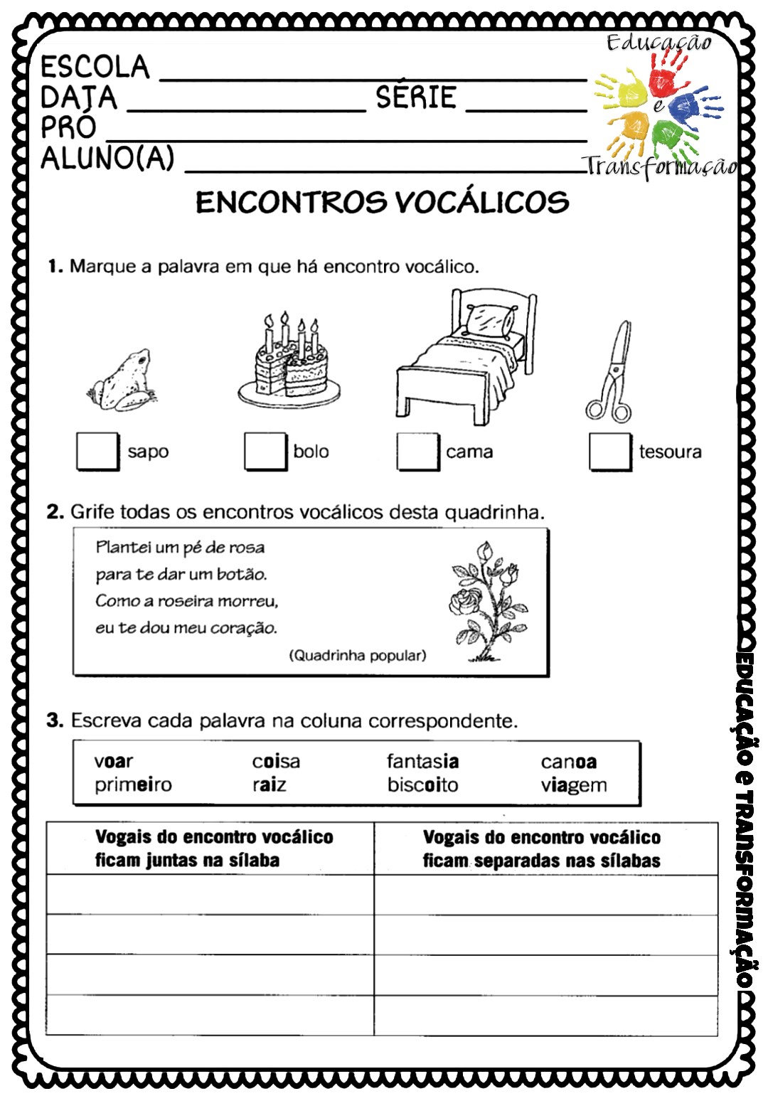 Web1) O encontro de duas vogais na mesma sílaba é chamado de: a) Ditongo. b) Tritongo. c) Hiato. 2) Chamamos de tritongo o encontro de: a) Três consoantes na mesma sílaba. b). Web26/nov/2022 - Atividades de ditongo, tritongo e hiato para o 3° ano, 4° ano e 5° ano do ensino fundamental para imprimir! Além disso possui explicação. 26/nov/2022 -.