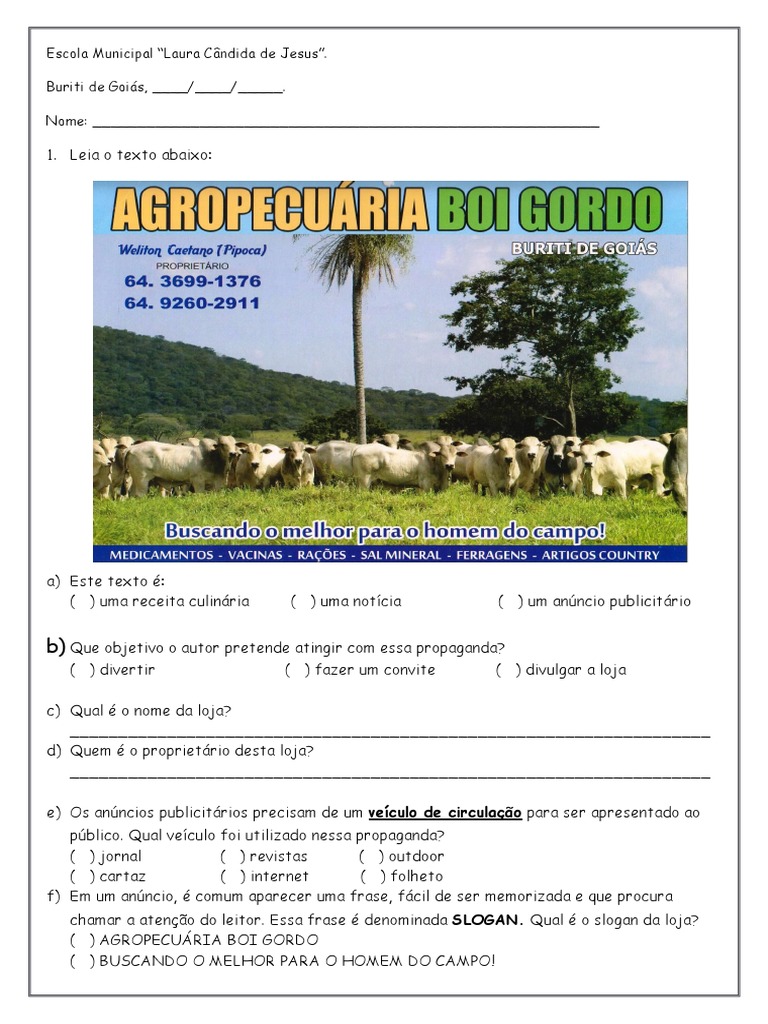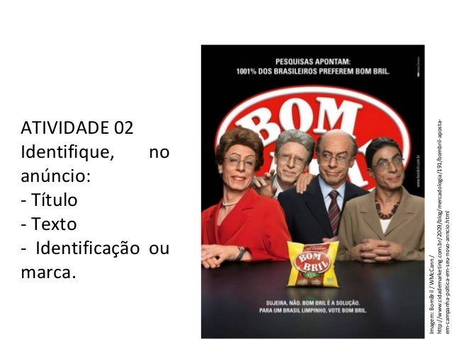 WebO Blog Tudo Sala de Aula existe desde 2014 e tem a missão de fortalecer as práticas pedagógicas dos docentes, sugerindo conteúdos e atividades originais e. WebO adequado é valer-se de uma conjunção adversativa, como entretanto. Pergunta 8 0,5 em 0,5 pontos Observe a peça publicitária a seguir e analise as asserções e a relação. WebConsidere o texto escrito em um anúncio publicitário de um carro da categoria SUV. Evite dirigir fora da estrada. Você pode não querer mais voltar para ela.. WebO anúncio publicitário é um texto, usado no intuito de convencer alguém sobre o uso de um produto, marca ou ideia, estabelecido em um meio de comunicação. Para convencer e. WebPara que seja efetivo em sua função, um anúncio deve ter cinco elementos que considero indispensáveis. Veja, agora, quais são eles. Título de impacto. A primeira impressão é a. WebO Texto Publicitário um tipo de texto veiculado em campanhas publicitárias e podem ser textos de natureza escrita, oral e visual. Eles estão presentes no nosso cotidiano e. WebAnúncio publicitário é um gênero textual usado para promover uma marca, produto, serviço ou ideia para um público definido em um meio de comunicação. Com linguagem. WebEntre as principais características do anúncio publicitário, destaca-se a intenção de venda de um serviço, bem ou produto. O consumidor precisa conhecer a.