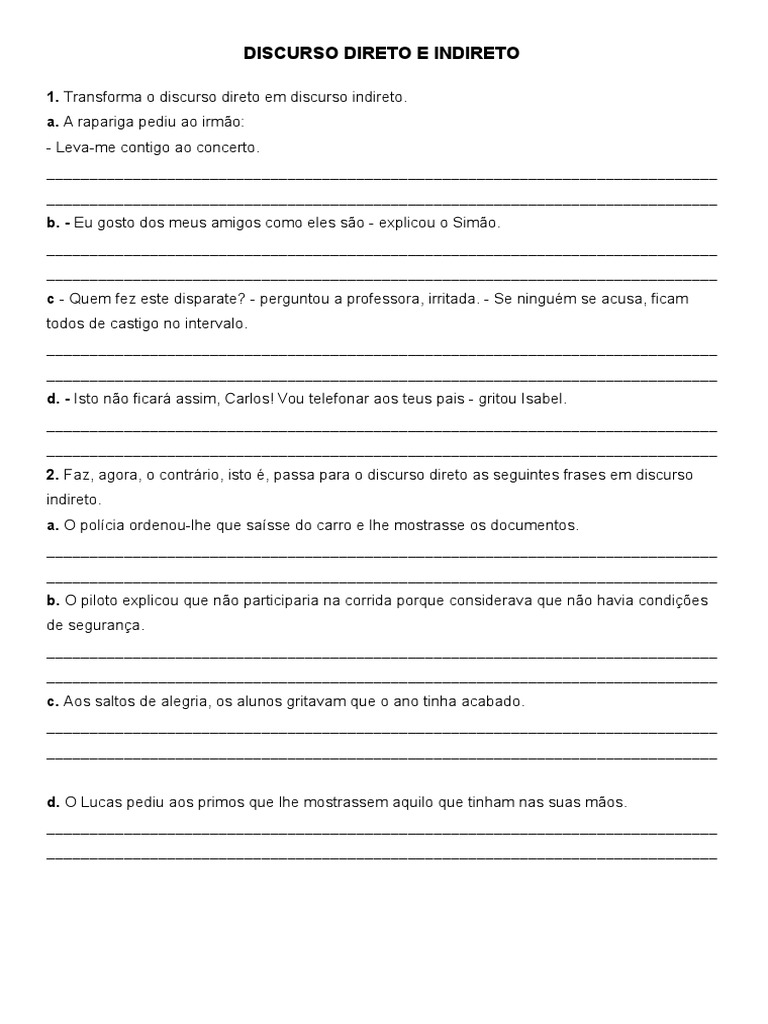 WebSimulado: Exercícios de Discurso Direto, Indireto e Indireto Livre com Gabarito - Português - Questões. 10 questões | Português, Tipologia Textual e Tipos de Discurso,. WebEste roteiro de estudos trata dos tipos de discurso, trazendo informações sobre o discurso direto e o discurso indireto. Contando com exercícios de vestibular, bem como com. WebWeb veja aqui mesinhas, curas caseiras, sobre exercícios sobre discurso direto e indireto com gabarito 7 ano. Questão 01 Com Exercícios Sobre Aposto E Vocativo: A) no.