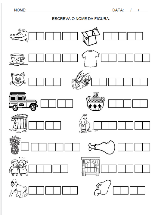 WebEscreva o nome das figuras. Atividade de escrever o nome das figuras, leitura e escrita, ortografia lh, ch e nh. ID: 2671885. Language: Portuguese. School subject: Língua. WebConteúdo Complete o nome das figuras Pinte a sílaba inicial de cada figura Ligue os desenhos a sílaba inicial Escreva a sílaba inicial Atividades para Educação. Web1/dez/2019 - Explore a pasta "nomear figuras" de kelly rodrigues no Pinterest. Veja mais ideias sobre atividades de alfabetização, atividades alfabetização e letramento,. WebQuestionário. por Adrianemms1. qual o nome da figura Combinação. por Albuquerquemari. QUAL O NOME DA FIGURA ? Alfabetização Questionário. WebAtividades com Ordem Alfabética Escreva o nome das figuras. Atividades com Ordem Alfabética Escreva o nome das figuras. Por: Admin. Em: 0. Tweet Pin It. Tweet Pin It.. WebPara realizar as atividades basta digitar nos retângulos os nomes corretos das imagens. Caso a palavra seja escrita de forma incorreta irá aparecer uma placa indicando o erro,.
